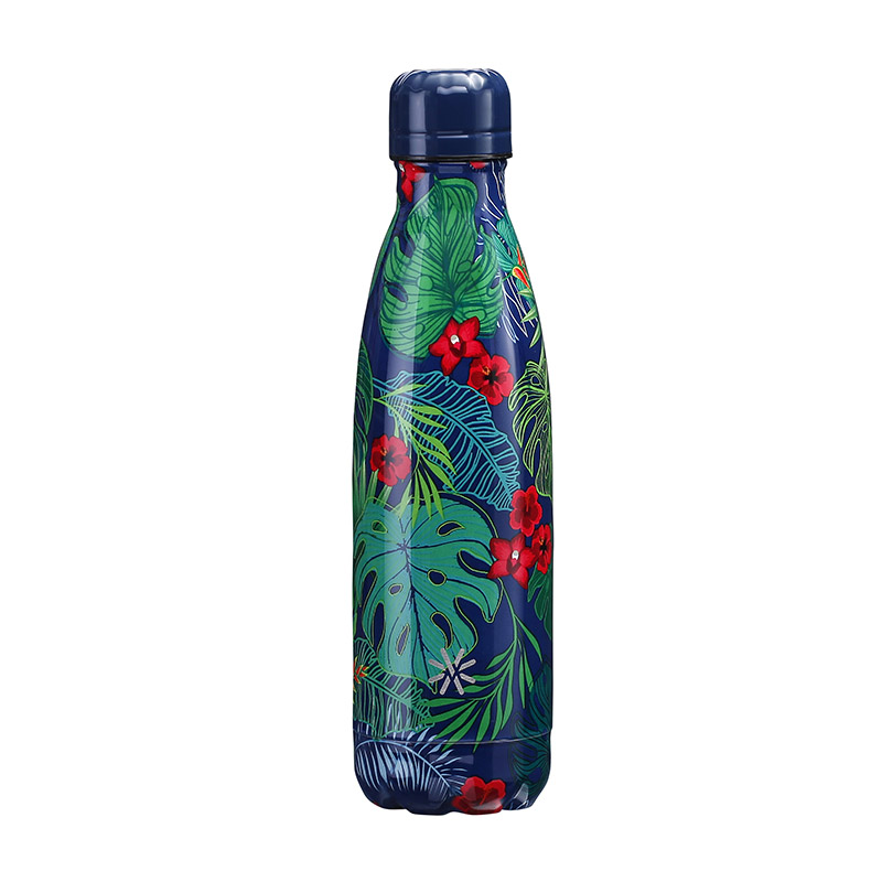 Pour finir ce périple dans la tendance exotique, nous vous proposons les deux gourdes AQUA Tropical, une sur fond noir et l’autre sur fond bleu marine.