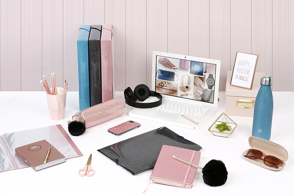 Nous avons aussi la gamme de papeterie GLOSSY pour ravir tous les fans de paillettes !