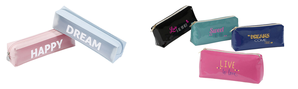 Si vous voulez être plus romantique, nous avons ces trousses HAPPY DREAM et DREAMS pour vous laisser rêveurs. Et pour les plus petits nous avons le sous-main avec des Chiots qui vous envoient tout leur « love ».