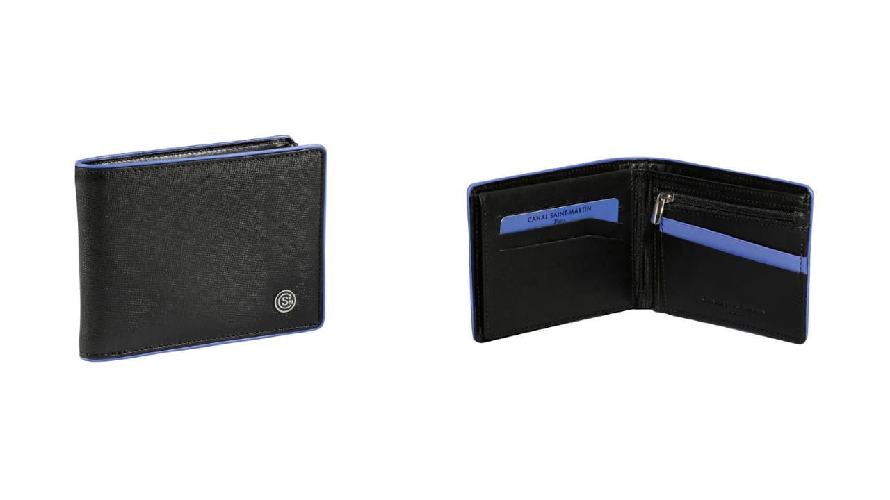 Le portefeuille à l’italienne « Louis Blanc », existe également en 3 coloris : Bleu, noir et marron. Il s’ouvre à l’horizontale et possède 2 compartiments.