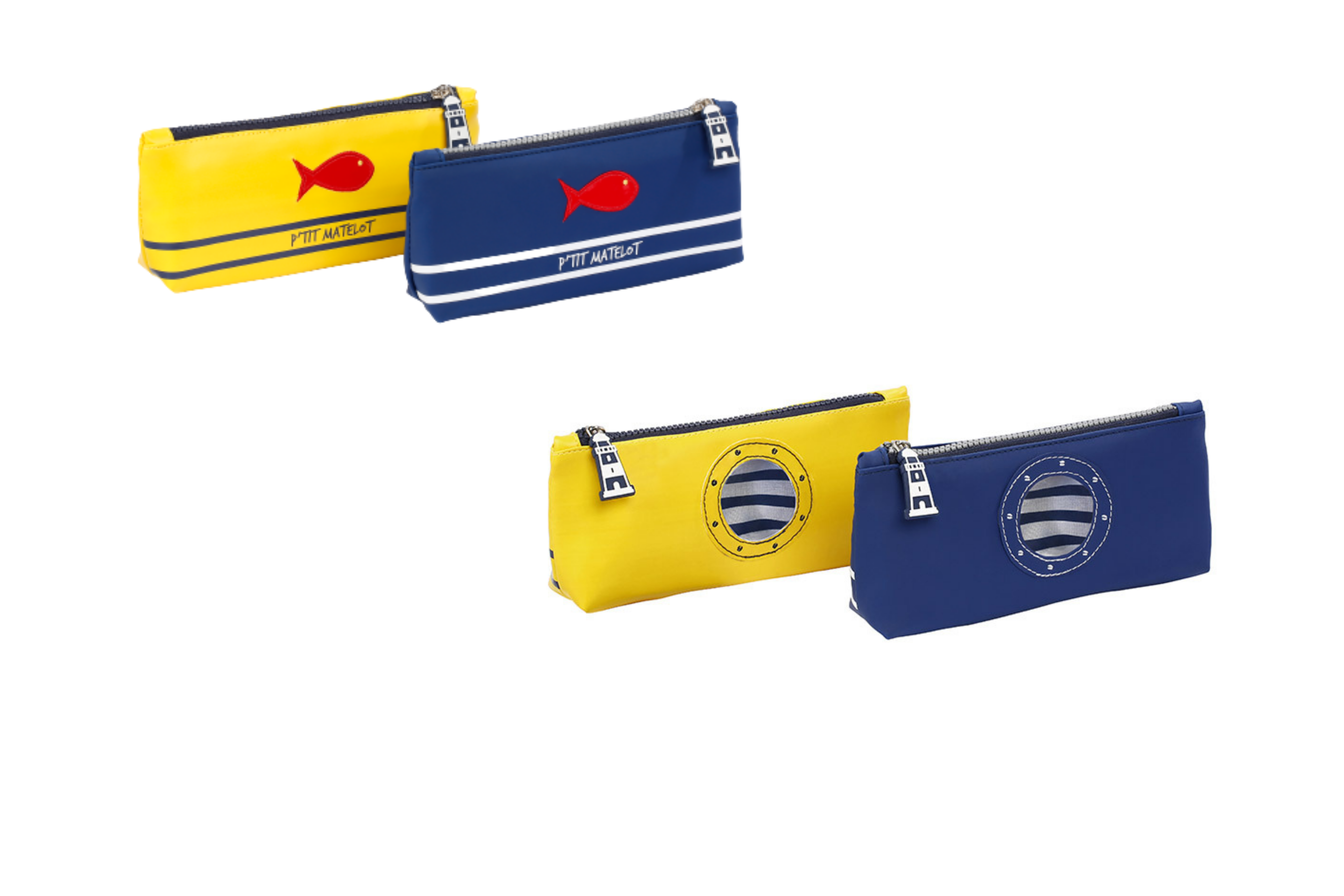 Si vous aimez le sac à dos, vous aimerez certainement la trousse qui existe également en deux coloris : bleu marine et jaune. De forme triangulaire (21 x 9 x 5 cm), elle est parfaitement assortie au sac à dos.