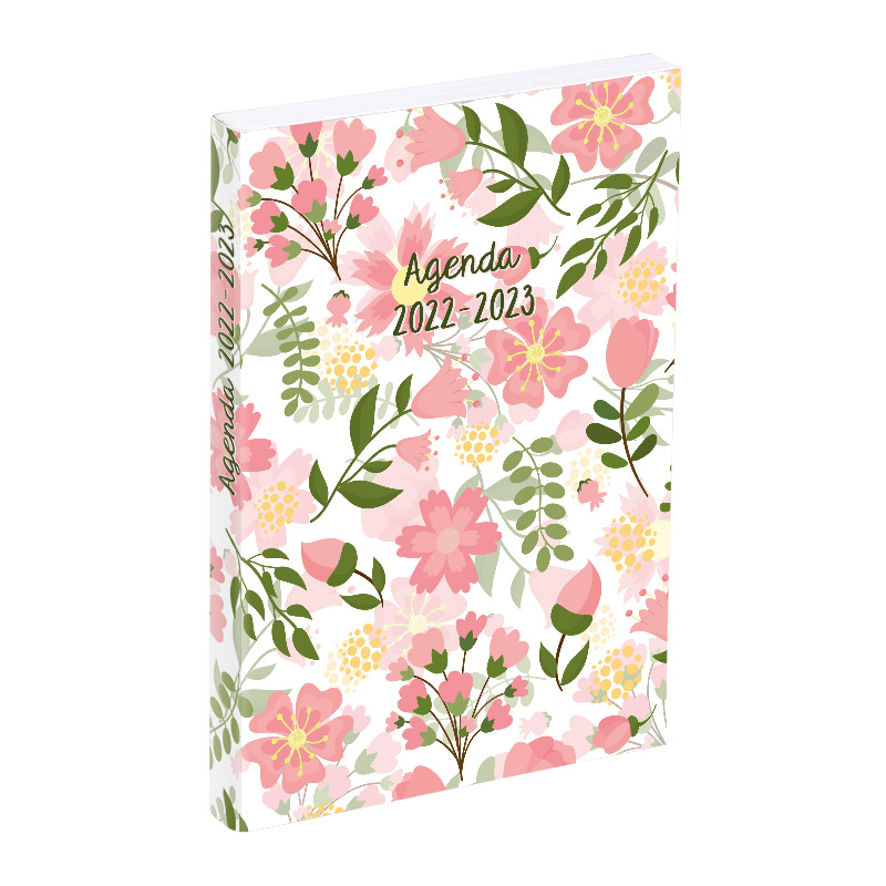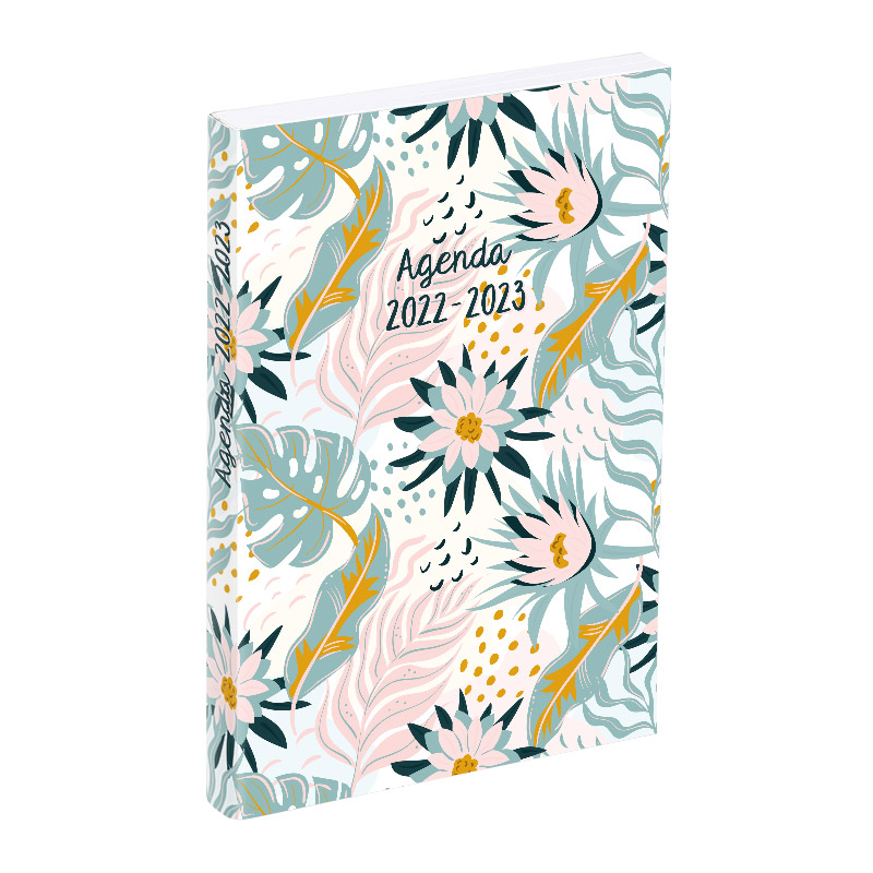 Cet agenda FLORAL est non rembordé en carton souple avec une finition en pelliculage mat.