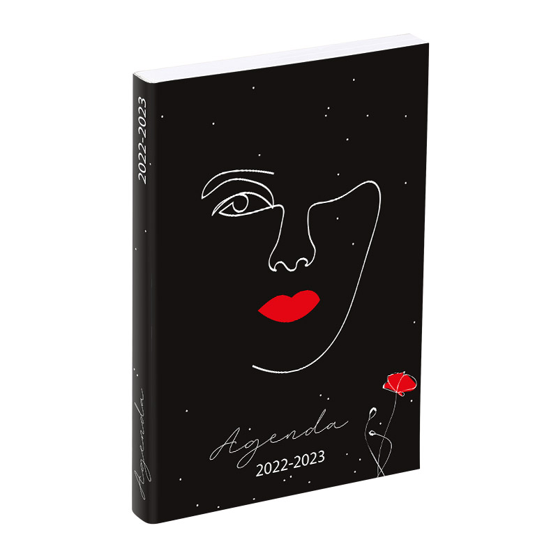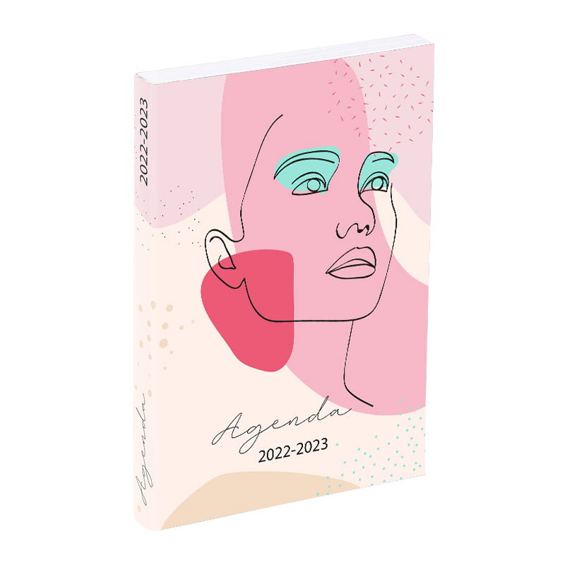 Cet agenda VISAGES est non rembordé en carton souple avec une finition en pelliculage brillant.