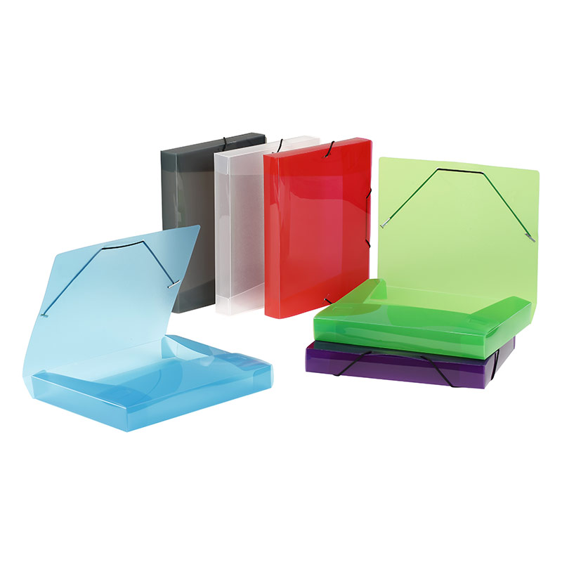 Cette boîte de classement (aussi appelée chemise à large dos) Propyglass est en plastique résistant (polypropylène).