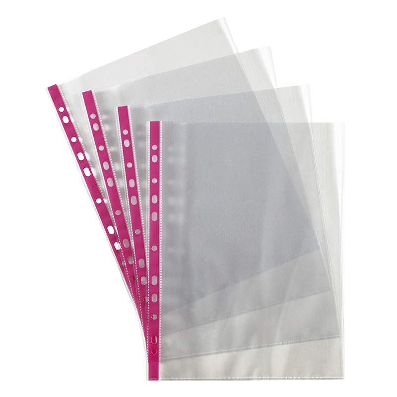 Les pochettes perforées en plastique Lady Class sont très originales avec une bande de couleur rose vif au niveau des perforations.