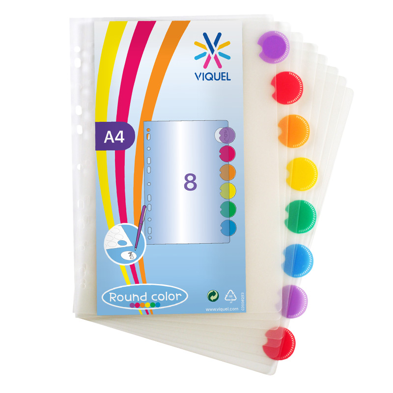 Les intercalaires 8 onglets Round Color sont en plastique souple et résistant. Les onglets multicolores égaieront votre classement. Ces intercalaires conviendront à toutes celles qui cherchent à classer des documents de format A4. Grâce à leur perforation de 11 trous, ces intercalaires sont adaptés à un très grand nombre de classeurs.