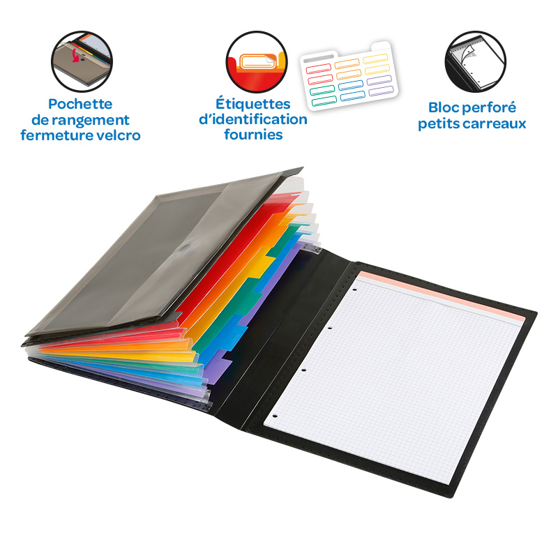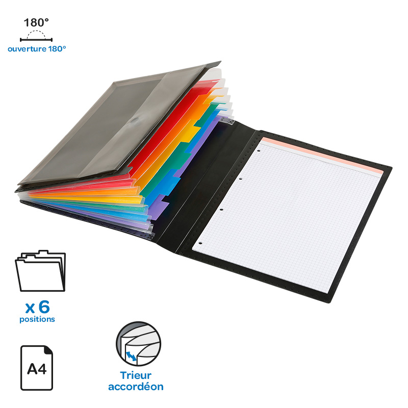 Trieur extensible 6 compartiments avec une ouverture à 90° “Quick Case” Rainbow Class