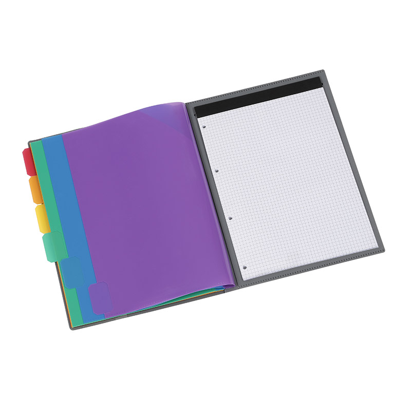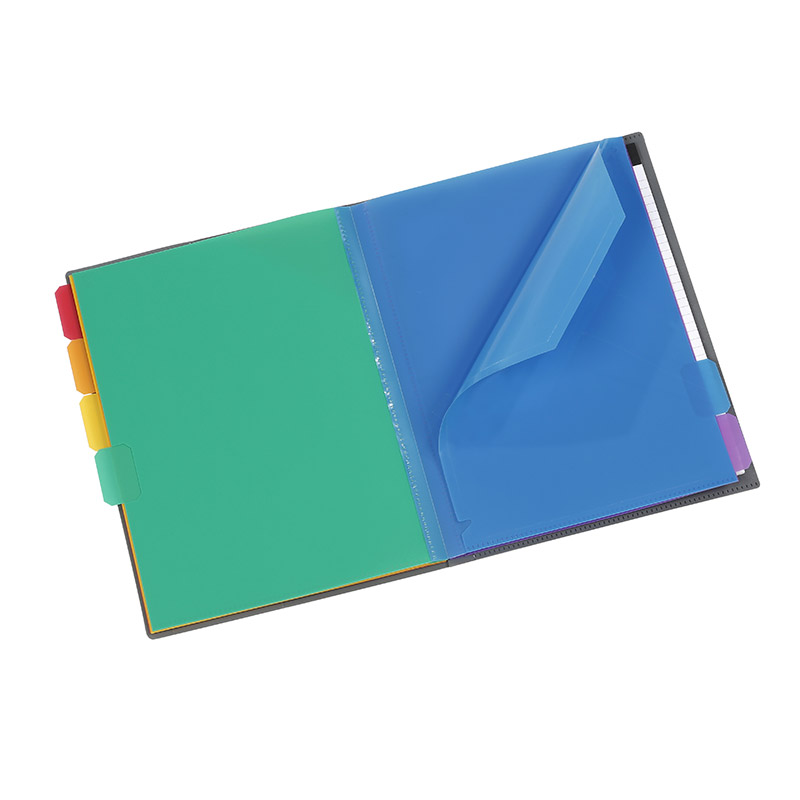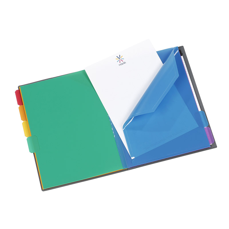 Il possède un grand porte-étiquette avec numérotation et 6 pochettes de rangement avec des onglets.