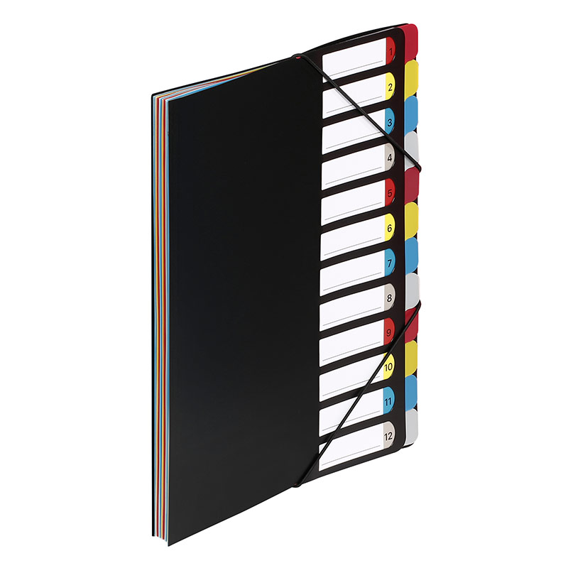 Ces intercalaires avec 12 onglets sont en plastique souple, résistant et multicolore. Le format maxi de ces intercalaires permet le classement des documents A4 rangés dans des pochettes perforées. Grâce à leur perforation spécifique, ces intercalaires sont repositionnables à volonté.