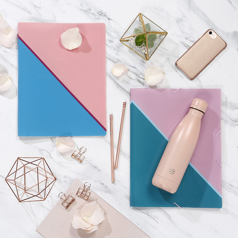 Cette collection a de nombreux atouts : un design bicolore très actuel dans l’univers de la papeterie ; un design simple pour les personnes qui n’aiment pas les gammes trop imprimées ; et des coloris pointus issus des cahiers de tendances Carlin et très répandus dans l’univers de la déco.