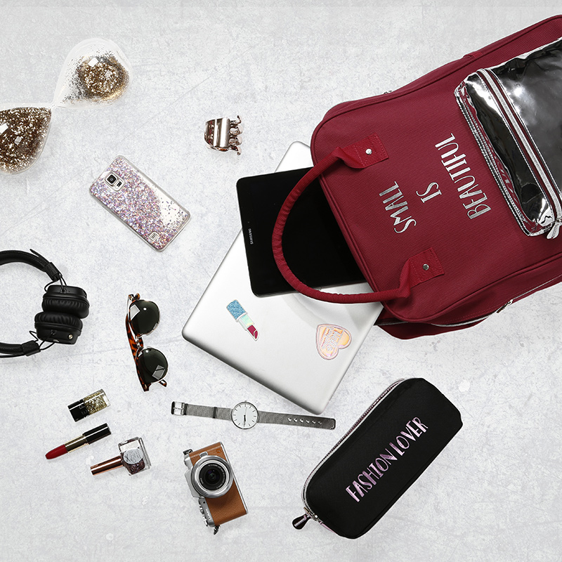 Outre un sac à dos classique bleu marine, cette gamme se compose aussi d’une trousse bi-matière avec un compartiment noir et un autre effet miroir rose, et un sac à dos avec une coupe très actuelle puisqu’il est rectangulaire avec des poignées afin de pouvoir le porter sur le dos ou bien à la main.