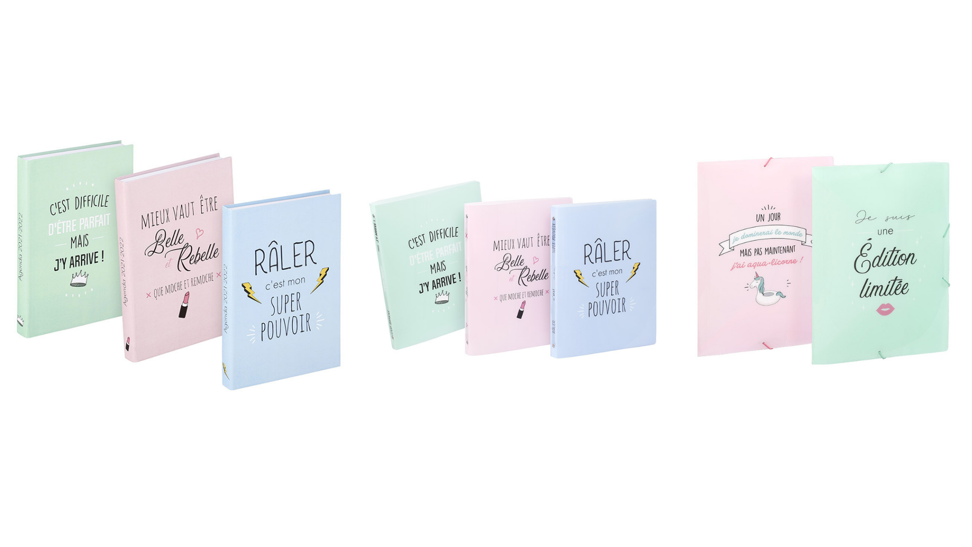 Cette gamme surfe sur deux grandes tendances : celle des coloris pastel, synonymes de douceur et des beaux jours, et celle des messages humoristiques.